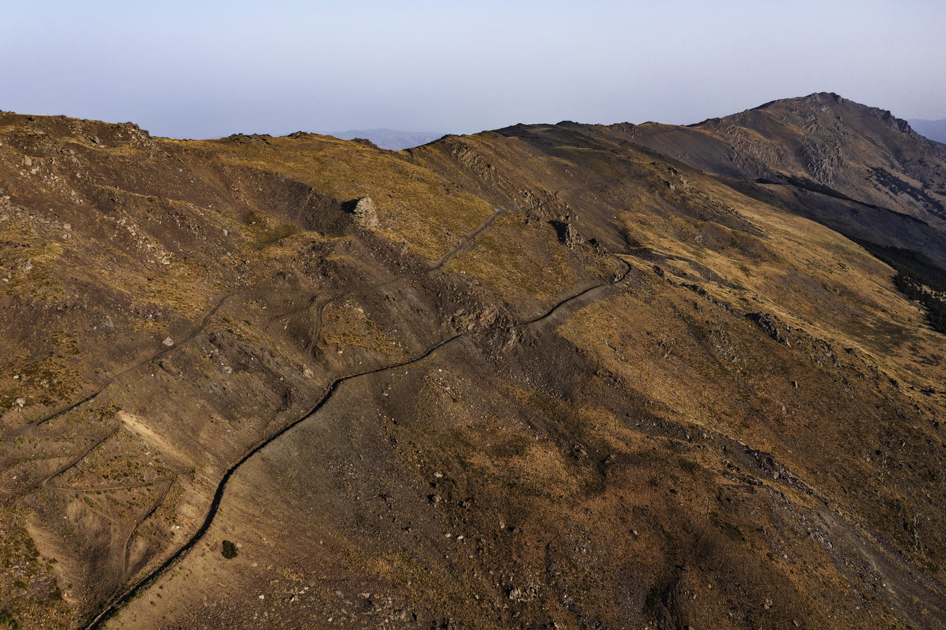 “Quando ero bambino qui c’era mezzo metro di neve quasi ogni inverno. Sono anni che non si vedono più di due o tre centimetri” dice Antonio. Proseguiamo il nostro cammino in alta quota dove un tempo c'erano pascoli verdi, oggi sterpi bruciati. Regna il silenzio. Dopo un po' Antonio aggiunge, con una tenerezza quasi paterna: “stanno soffrendo anche le acequias, senza più neve ad alimentarle. Ma dobbiamo continuare a proteggerle, sono troppo importanti per i campi.”