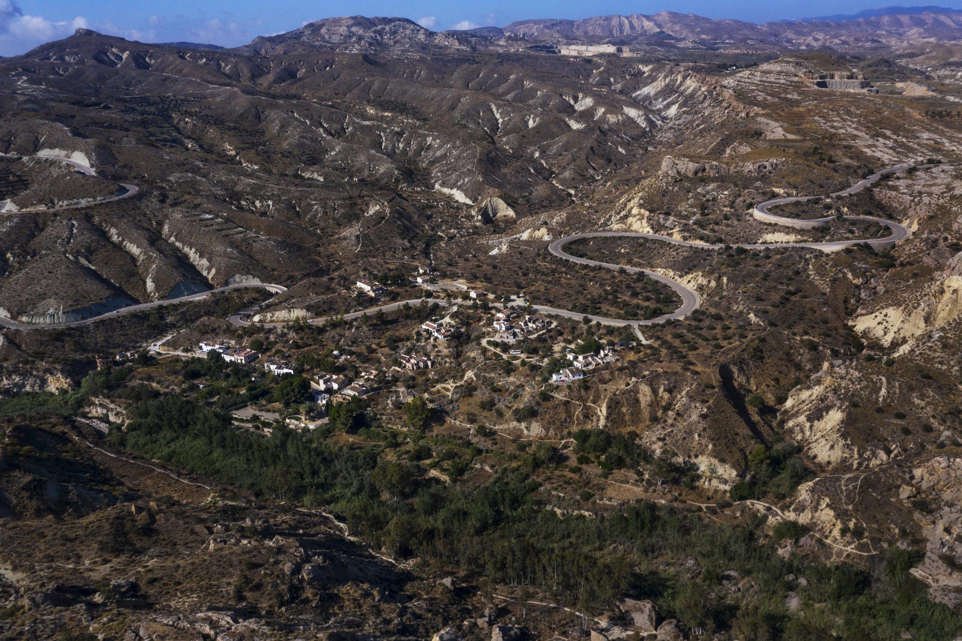 Attorno al villaggio, si estendono a perdita d'occhio solo dune rocciose e bianche colline, riarse dal feroce sole d'Almerìa. Ci sono soltanto delle piantagioni di ulivi a coltivazione superintensiva ad interrompere un paesaggio da film Western. All'interno del canyon lo scenario è diverso: una vegetazione lussureggiante, d'un verde brillante, incornicia una manciata di antichi casolari bianchi. Prestando l'orecchio, si avverte onnipresente lo scrosciare cristallino del rio Aguas. È qui che, nascosto da sguardi indiscreti, sorge l'eco-villaggio di Sunseed.